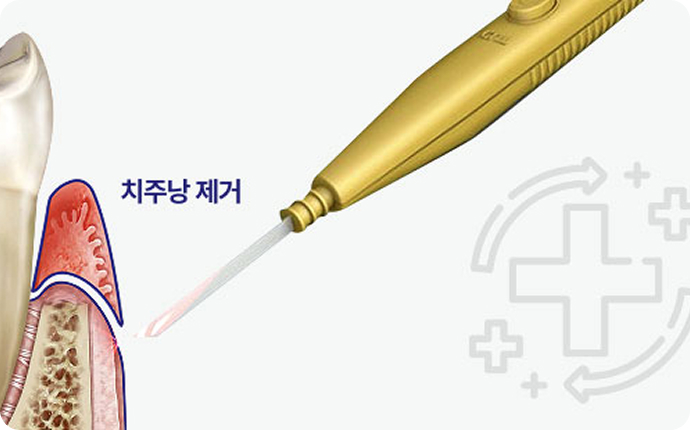 통증없이 치주낭(세균집)을 제거하고, 잇몸회복에 도움을 줘요.